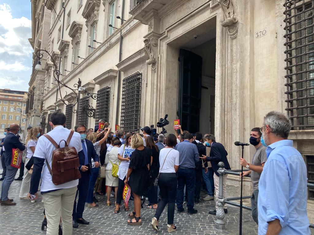 Muovono da piazza Montecitorio fino alla vicinissima piazza colonna, dove ha sede il governo, indossano t-shirt bianche con la scritta