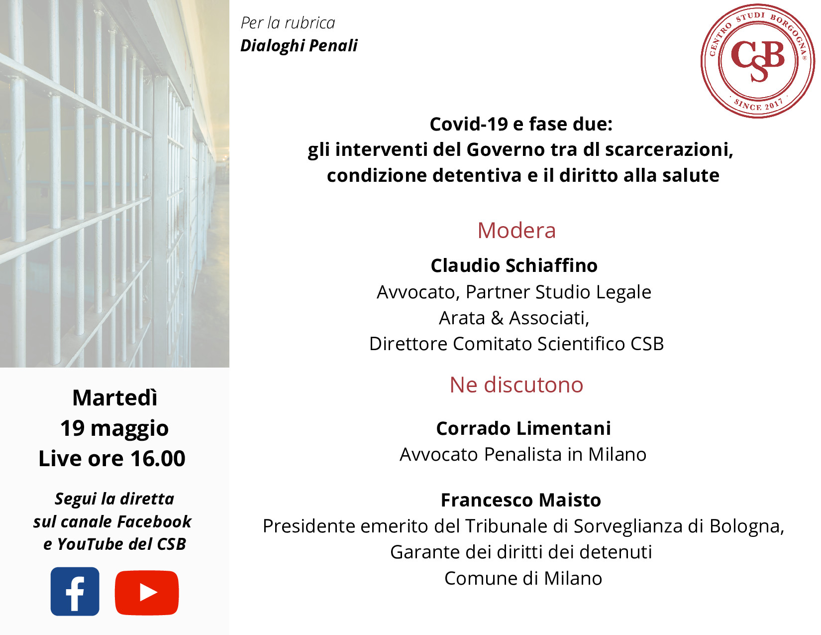 Milano,m 18 maggio 2020 – Vi aspettiamo martedì 19 maggio, live sui social a partire dalle ore 16.00, per un