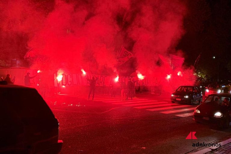 Quaranta Irriducibili, gli ultras della Lazio, si sono ritrovati a ponte Milvio, a pochi passi dal ristorante Aristocampo, per un presidio finito pochi minuti fa senza i temuti scontri. Solo uno striscione “Voglio andare a vincere in Europa” e pochi fumogeni rossi, quando manca meno di un’ora all’inizio della partita all’Olimpico contro il Borussia Dortmund.